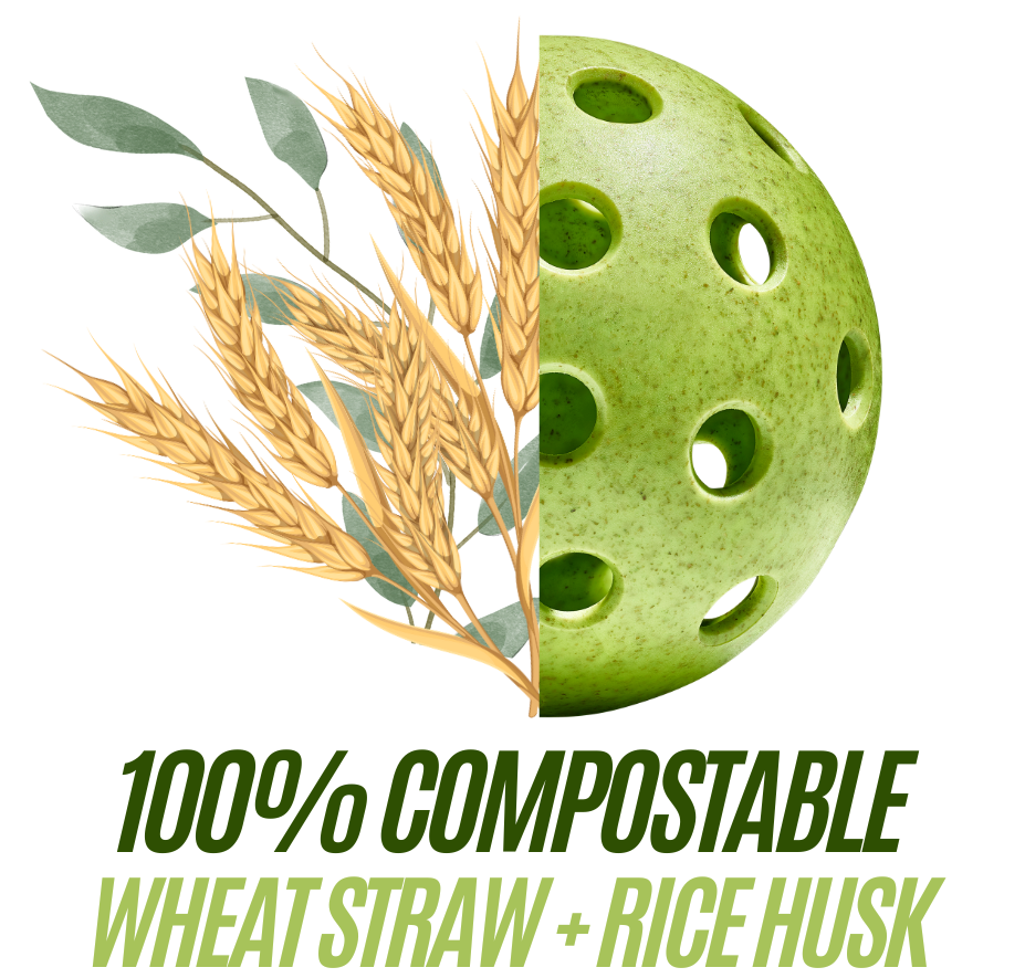 It’s the world’s first fully compostable pickleball! Made from a unique blend of wheat straw and rice husk, this ball plays like plastic but breaks down naturally in just 100 days—unlike regular pickleballs that stick around for centuries.
